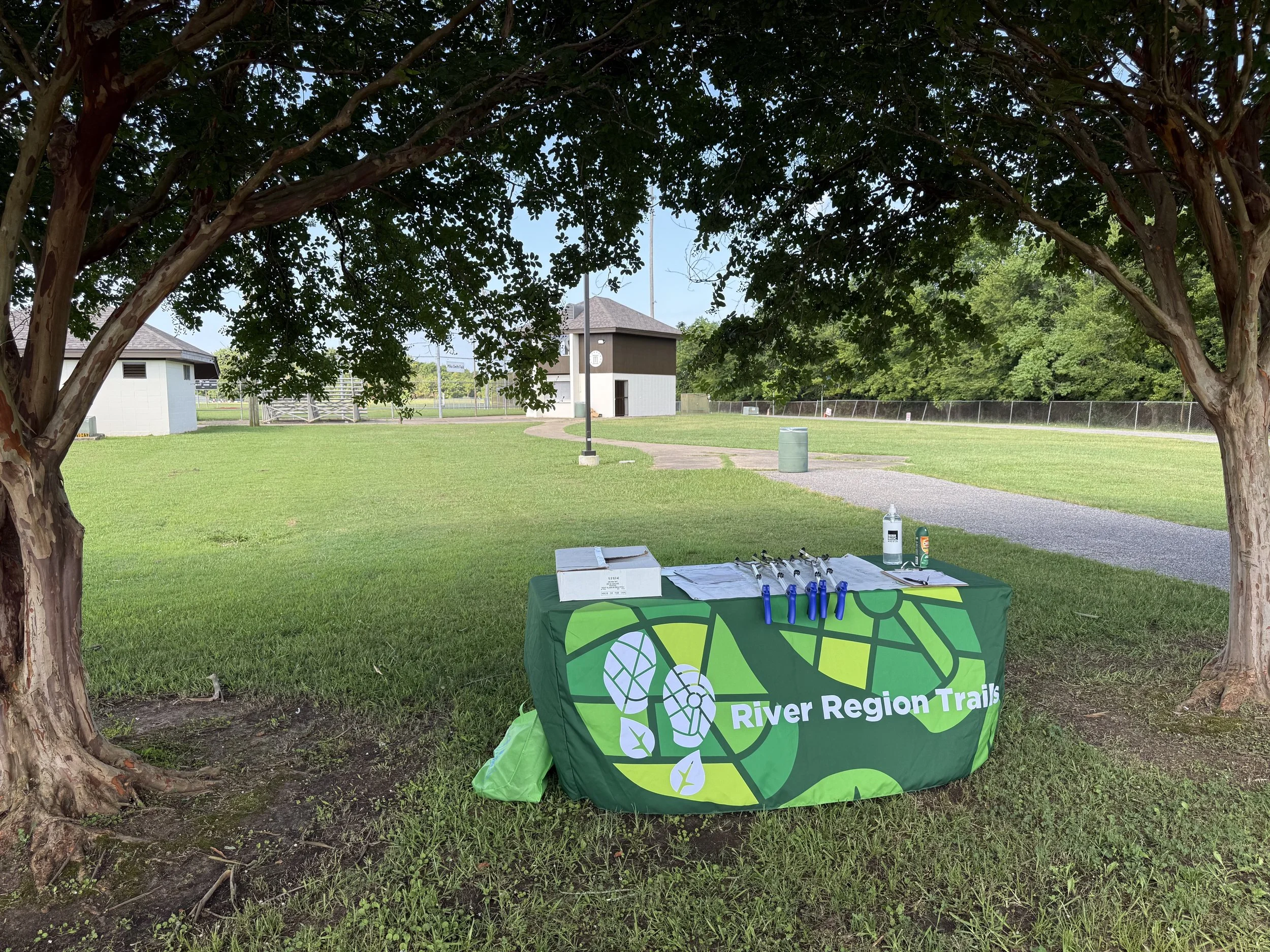 River Region Trail will have a green table set up prominently near parking. The table will have the sign-in/out sheet, the grabbers and trashbags.